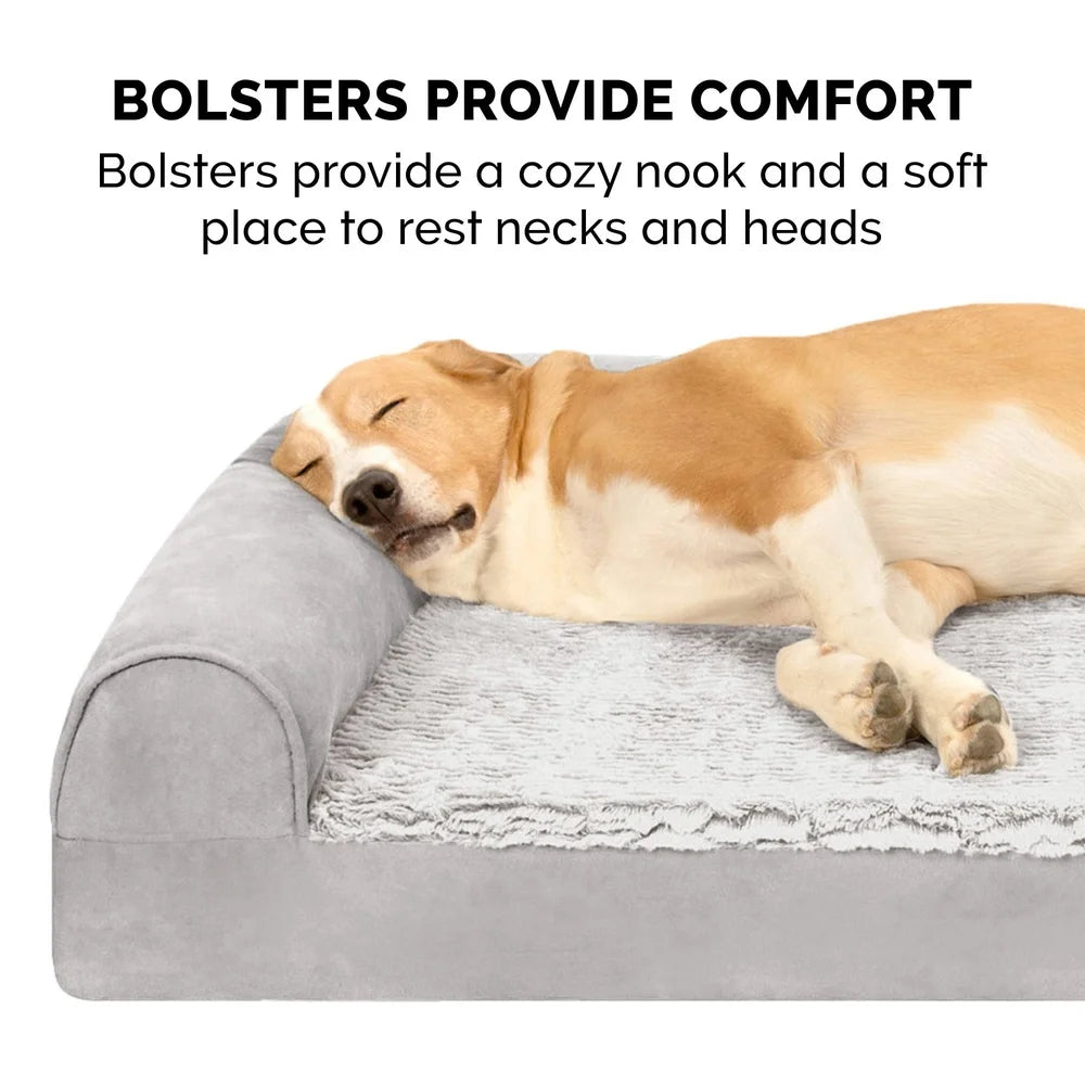 Orthopedic L-Chaise Dog Bed – Jumbo Faux Fur Comfort with Bolsters
