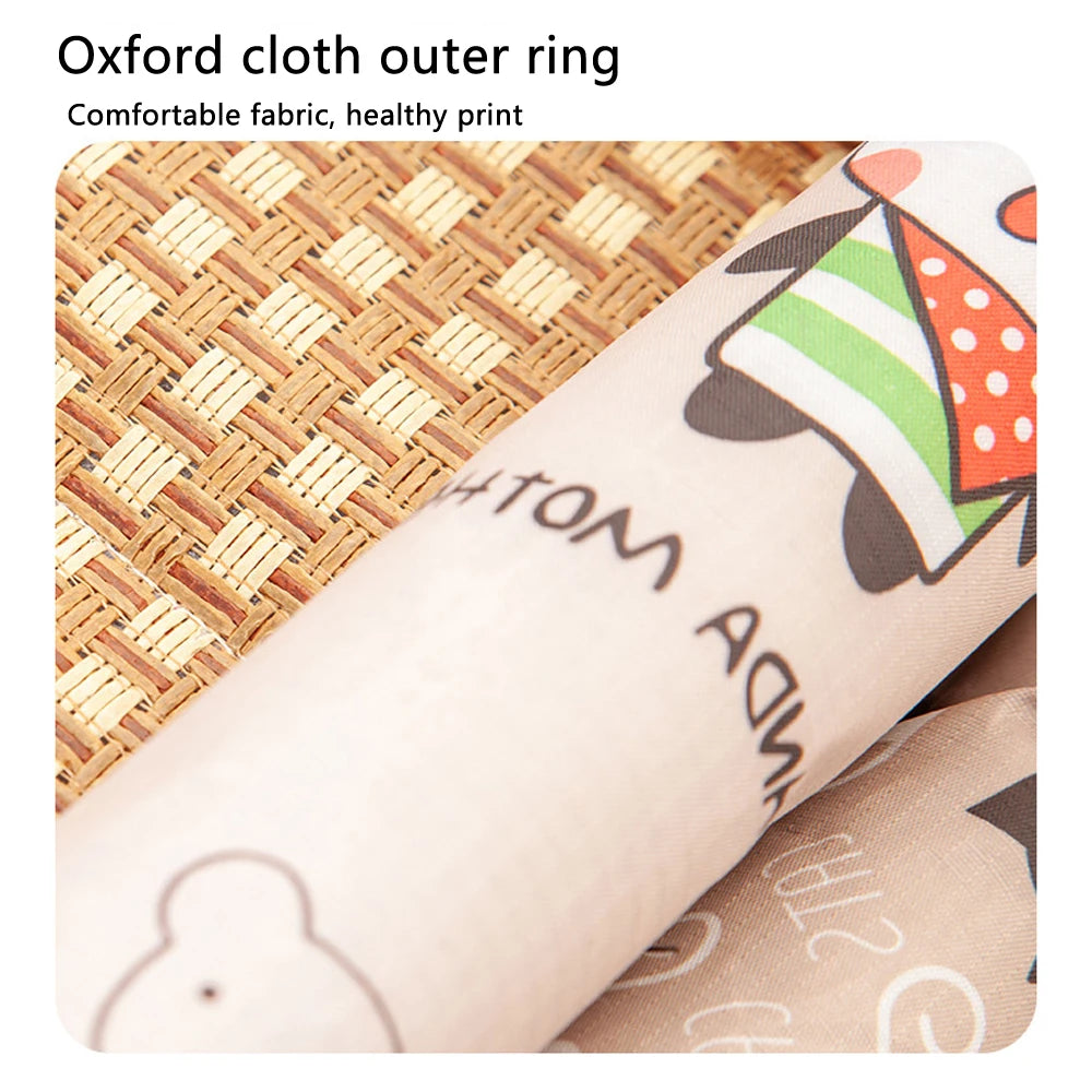 Natural rattan surface with breathable mesh backing and moisture-resistant materials.